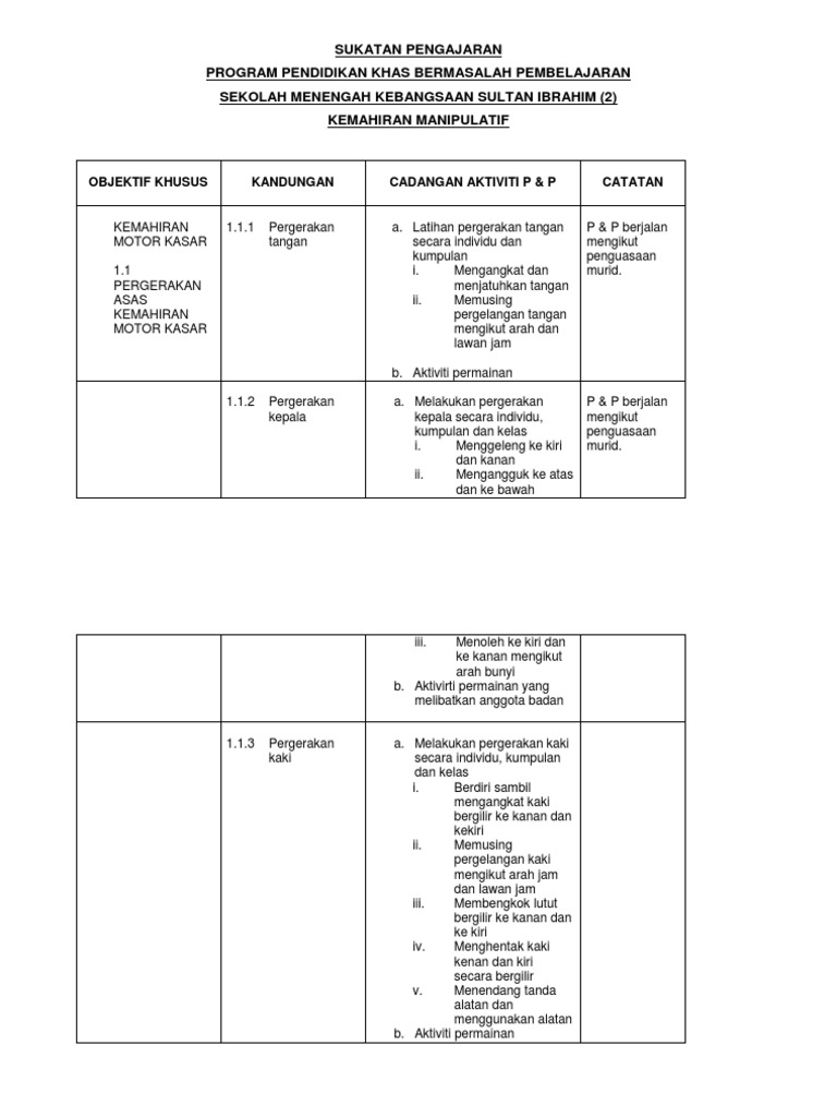 Huraian Sukatan Pendidikan Khas Bermasalah Pembelajaran Pdf